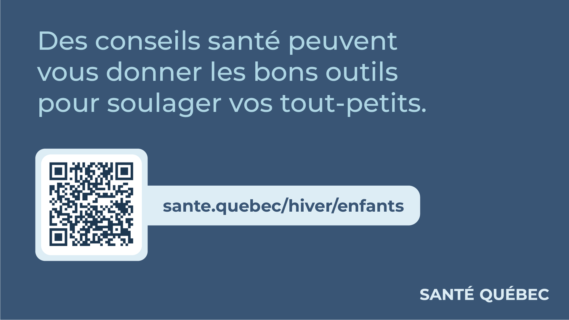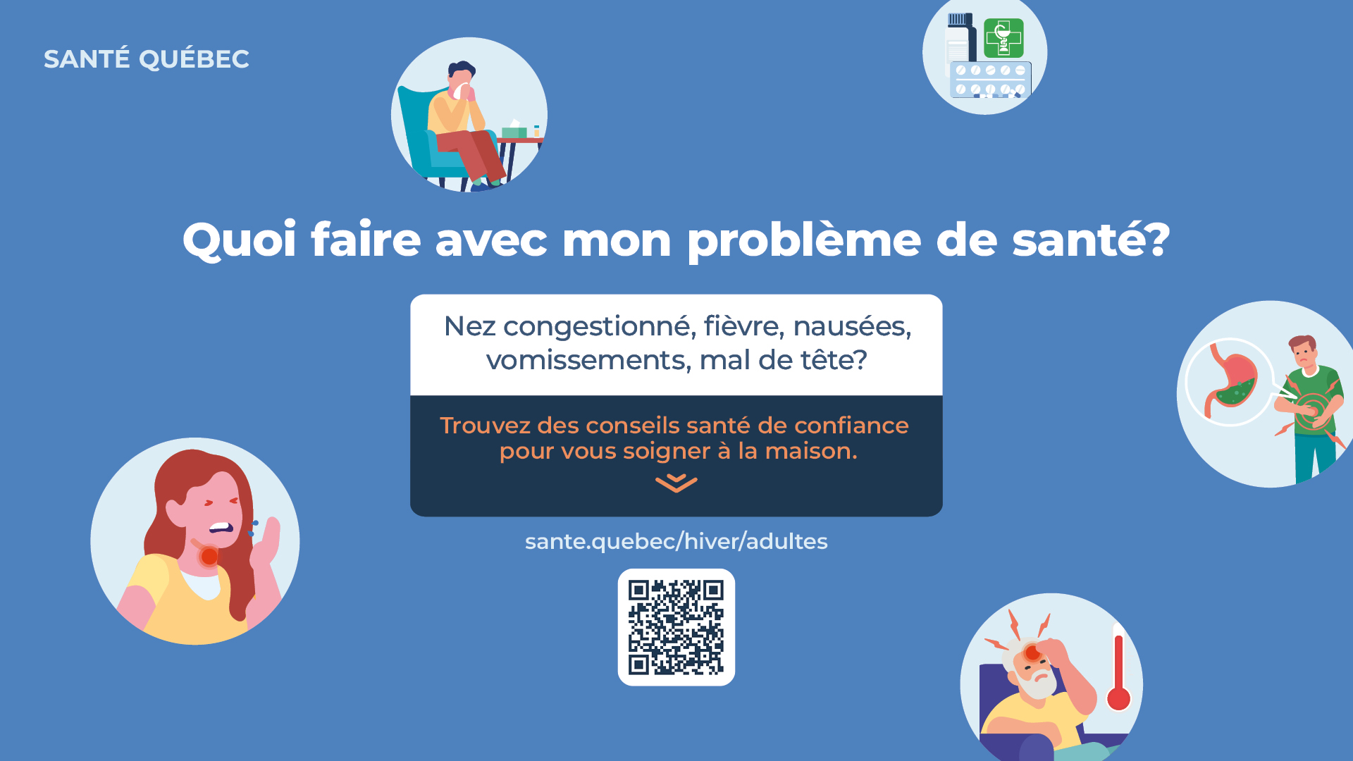 En complémentarité avec le ministère de la Santé et des Services sociaux (MSSS), Santé Québec déploie une campagne hivernale humaine, concrète et alignée sur les communications existantes du réseau. L’objectif : renforcer les messages clés et outiller la population afin de favoriser les bons réflexes de soins.